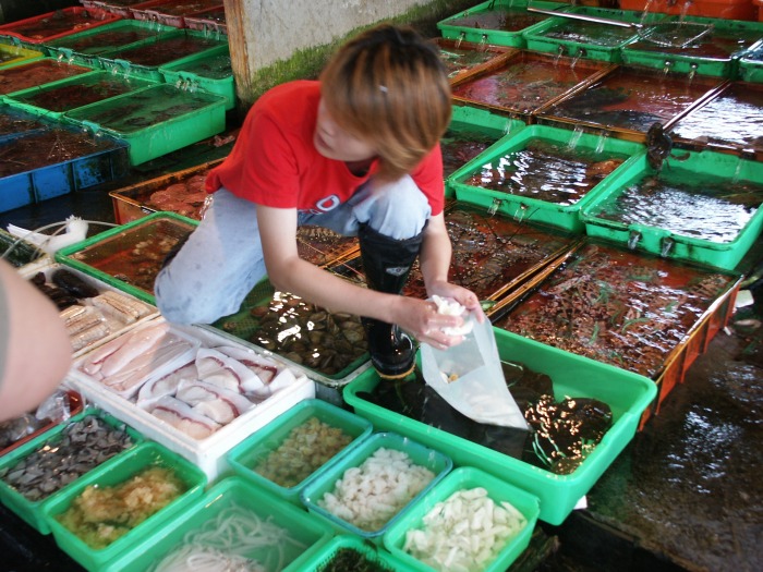 some FRESH seafood. Basically, you select several bags full of live seafood, carry it to a nearby restaurant