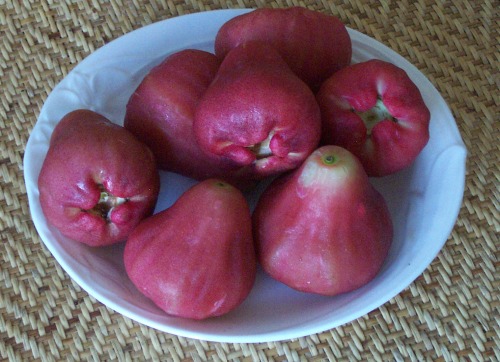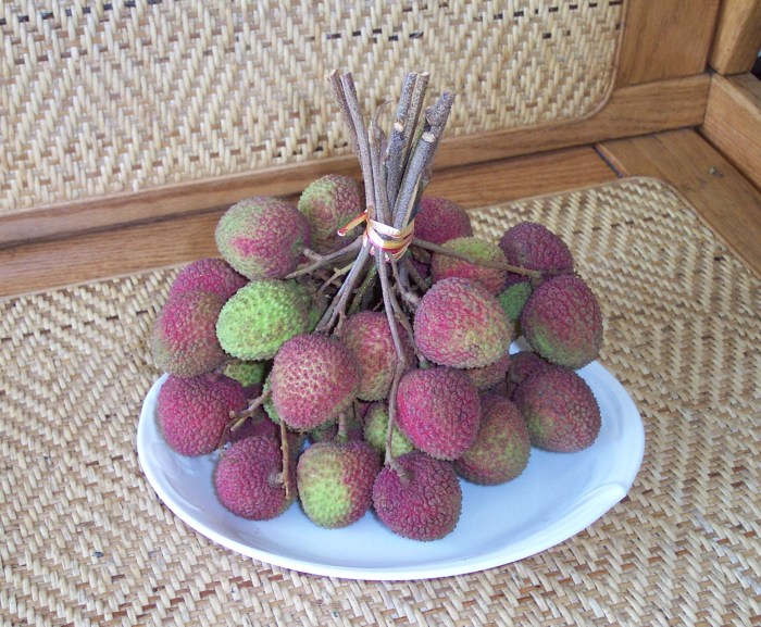 FruitThe first two photos are of lianwu, a delicious crispy fruit known in English by the unfortunate name "wax apple". They don't taste anything like wax, though. Next are little tomatoes, surprisingly sweet, and a plate of very fresh lychees.