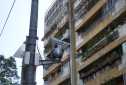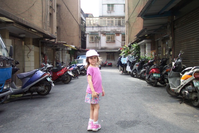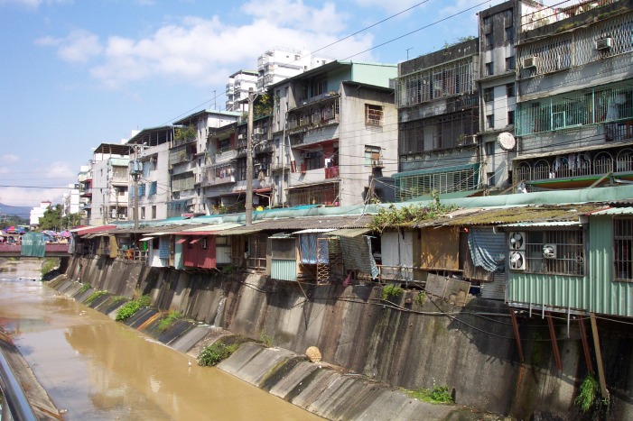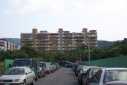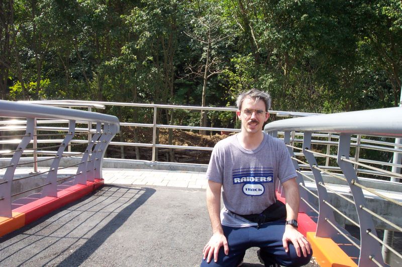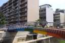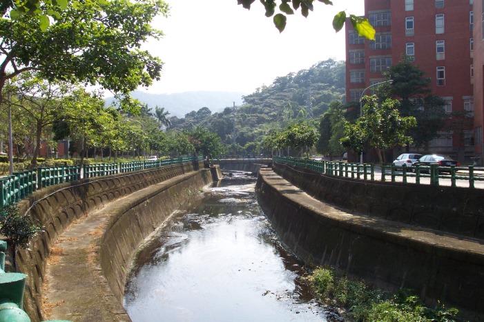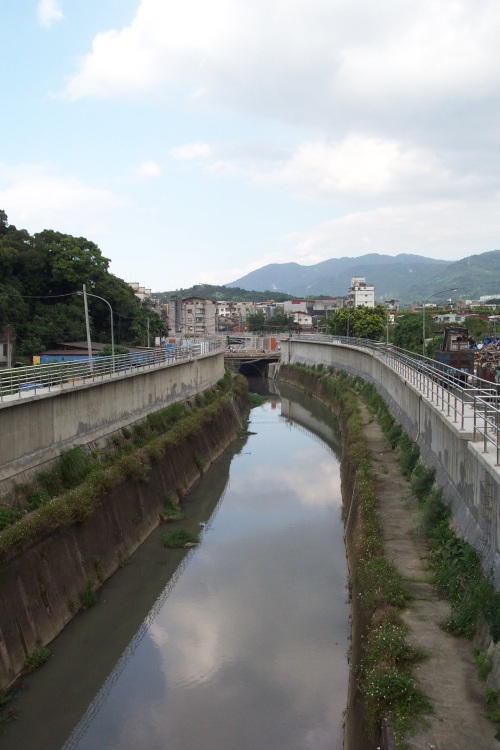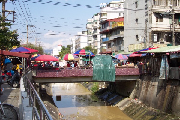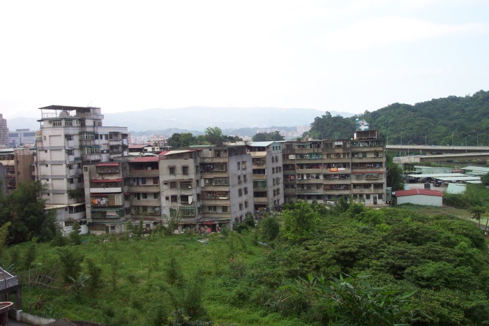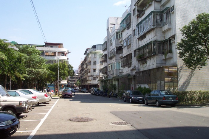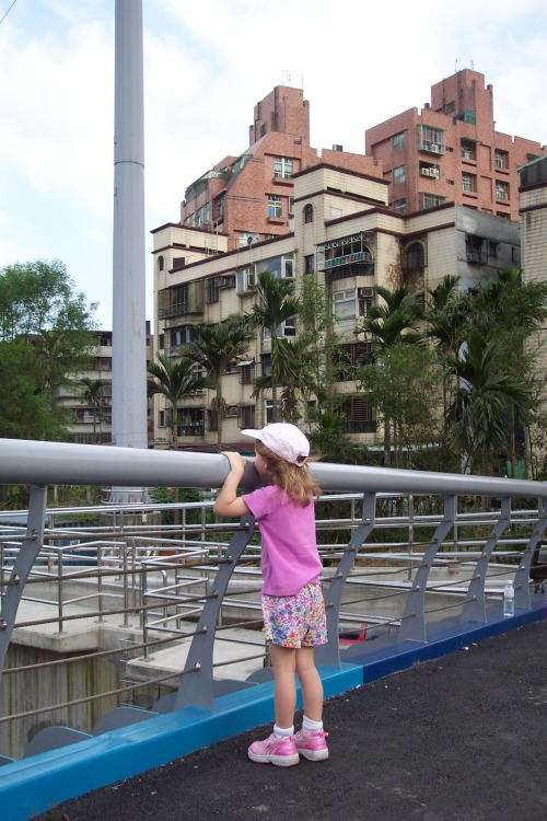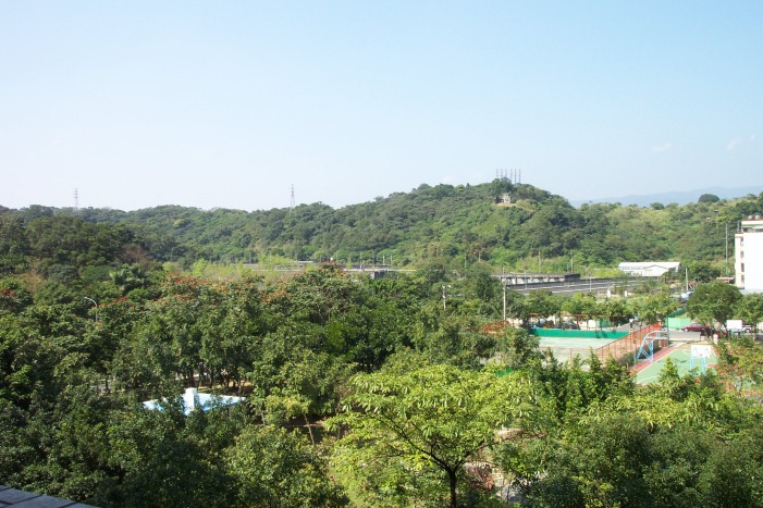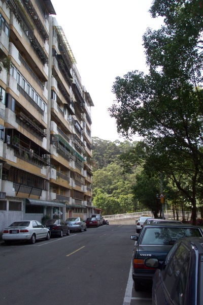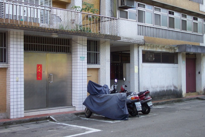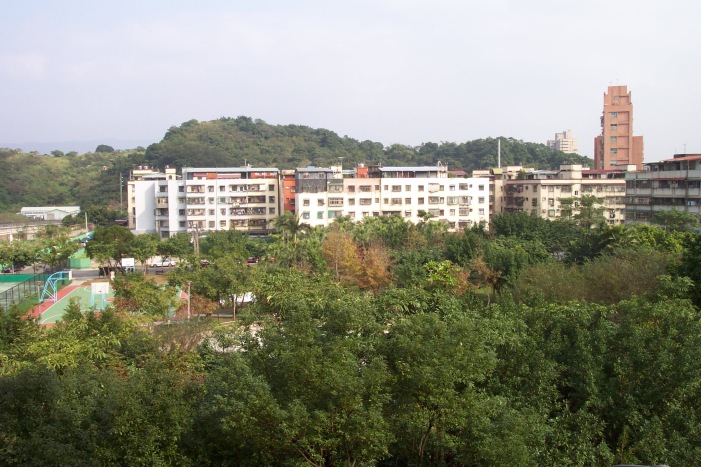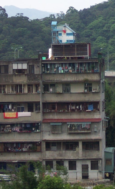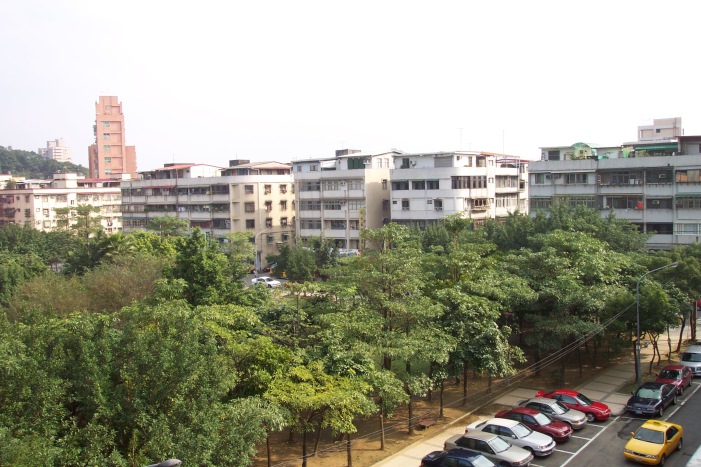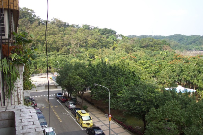 We live in Nankang, a district in the eastern outskirts of Taipei City. Here you will see pictures of our neighborhood, including the river, the park, apartment buildings, and the Academia Sinica campus. We totally lucked out with our apartment and our location. We are a short walk from Academia Sinica, Clara and Oliver's schools, a bakery, three mini-marts, numerous family grocery stores, restaurants, and cafeterias. We are also directly across from a nice park and near several others, near the river, and near a major bus route. The subway (MRT) station is a 10-minute bus ride away. Other neighborhood attractions include a banana grove, a mouse and rat breeding center, an Army post, a cobbler, at least 6 cram schools, 3 barber shops, a stationary store, a dentist, several print shops, fruit stands, a traditional market, incense shops, apothecaries, drug stores, and two appliance stores. There are video cameras mounted on utility poles almost everywhere in the city, and the police patrol frequently. A short explanation of cram schools is in order. A cram school is a small private school where kids of all ages receive extra instruction in particular subjects, like English or Math. It is quite normal to see kids in these schools as late as 10 o'clock P.M. Academic grades, school selection, and achievement are highly stressed here. Click on thumbnails to see larger pictures...Our Apartment BuildingWe live on the 5th floor of the apartment building in this picture. There is a common entryway with a shared elevator shaft and stairwell. In the last picture, you can see that they are replacing all of the tiles on the building. The 7-days-a-week hammering and chipping will last over a month!