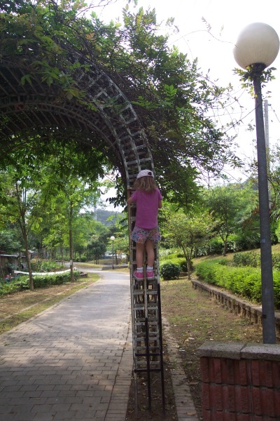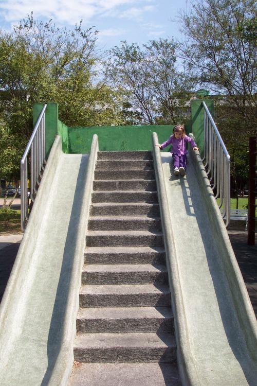 Street and Park Views near our ApartmentThe park is very popular for a number of activities, including basketball (usually played until midnight), tai chi (in the morning), dance classes, tennis, firecracker launching, and dog exercising. There is even a mud-pit with water spigot for the kids to play in. As usual, there are river-stone walks for a healthy foot massage. For the kids, there are very well-made concrete slides. They put plastic and metal slides to shame! The park has another important use: on sunny days, it is used as a place to air and dry bedding!