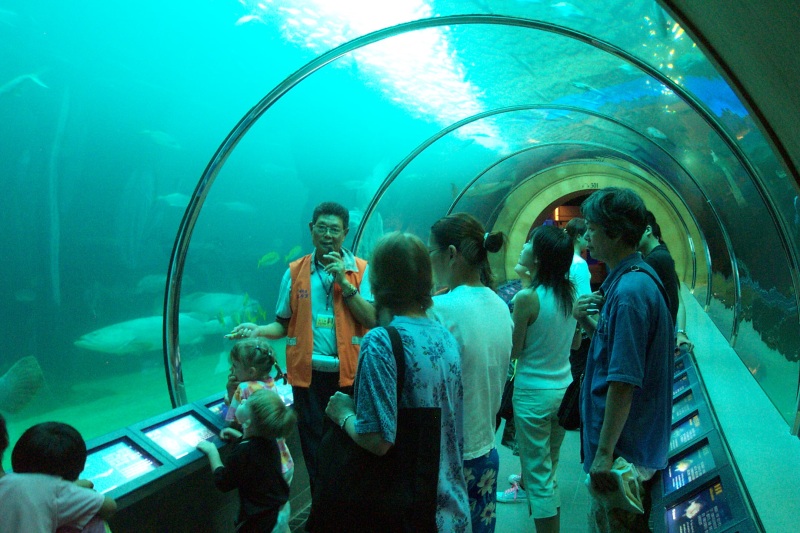 Among its many attractions, Penghu has a very nice aquarium. In one section, visitors walk through a large glass tube which is surrounded on all sides by sharks, rays, and other large sea creatures. Mr. Lin gave us an excellent personalized tour. Click on thumbnails to see larger pictures... |