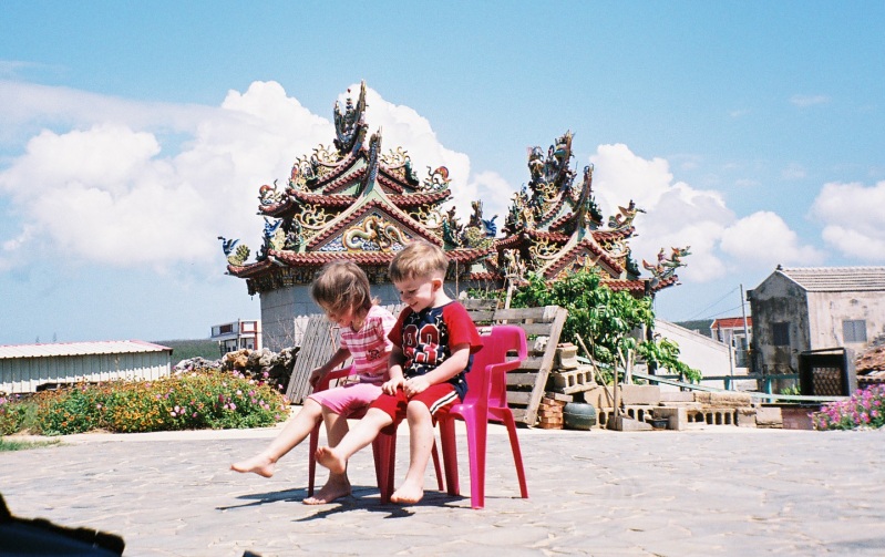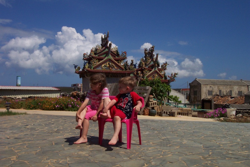 Click on thumbnails to see larger pictures...These are pictures of the two houses, which are side-by-side. Note the construction of the floors and beds in the bedrooms. These are views from the main house, including a picture of a postal motorcycle and one of the family dogs. Here are some shots of the Lin family, Yen Mama and Melissa, Clara and Oliver, and us. We had a very enjoyable visit. The Lin family and their friends were very friendly and helpful. What great hosts! |