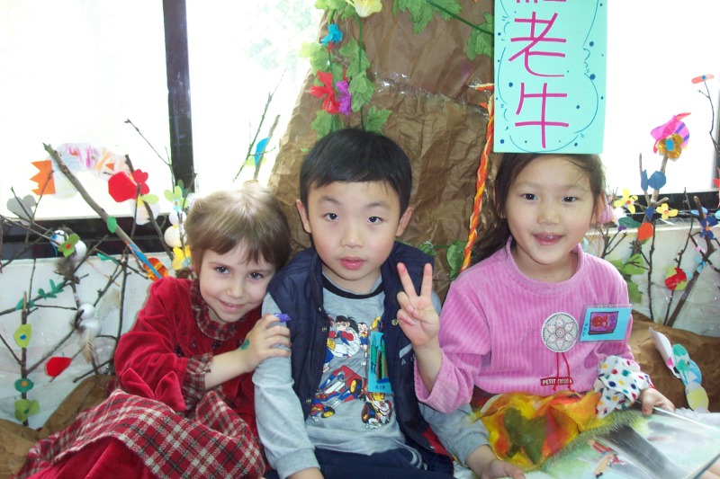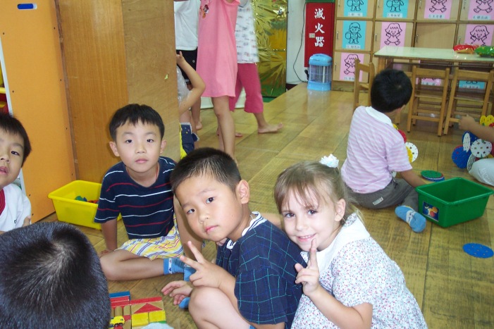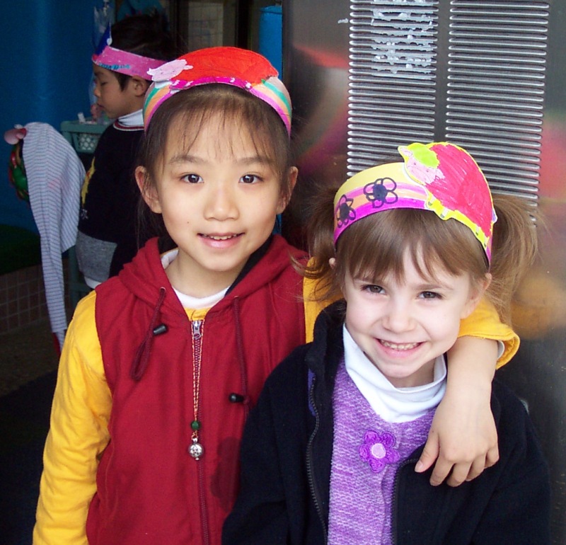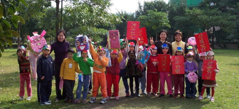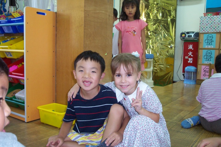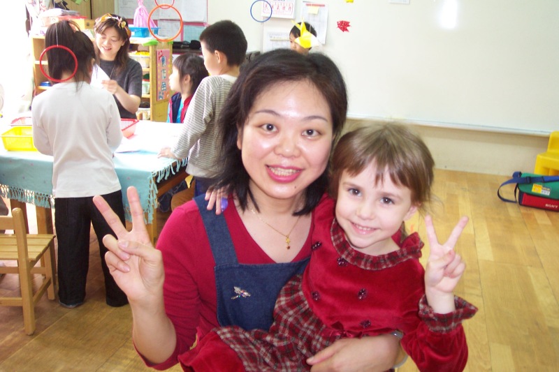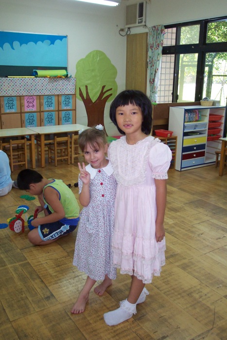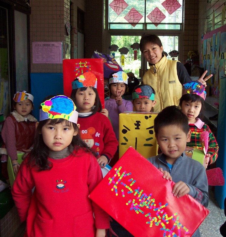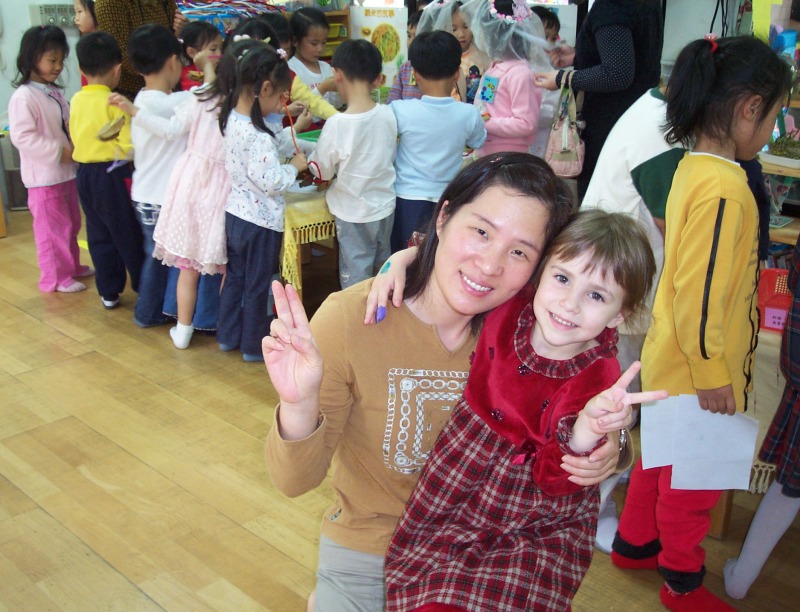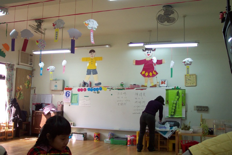 TeachersThe Chinese word for teacher is laoshi. Students call their teachers by their family name plus laoshi. Clara's teachers are He Laoshi and Zhang Laoshi. Clara's ClassmatesClara's class has about thirty students and two teachers. This is the standard size for a 5-year-old kindergarten class in Taiwan. Nearly all of her classmates are Chinese-speaking Taiwanese children. Since Academia Sinica is an internationally-known research institute, a few of her classmates have lived abroad and know a little English. She also has a Russian classmate, who hardly knows any English at all ... but she speaks beautiful Chinese! Clara's ClassEach class has a name: the "White Cloud" class, the "Star" class, and the "Sunshine" class, which is Clara's. Holidays and Special Events