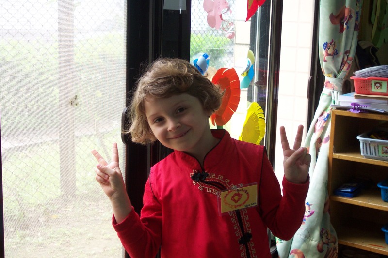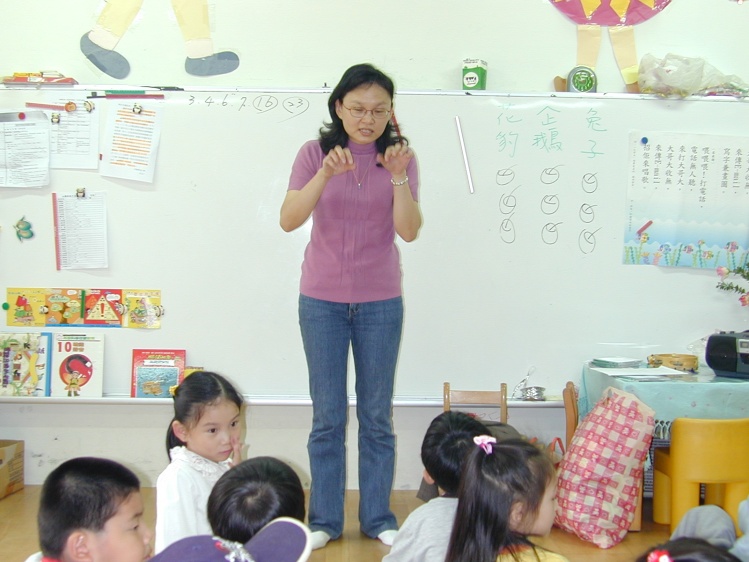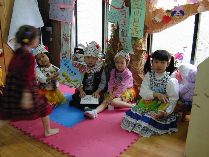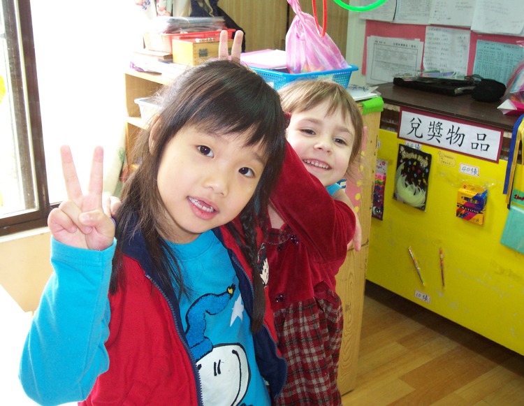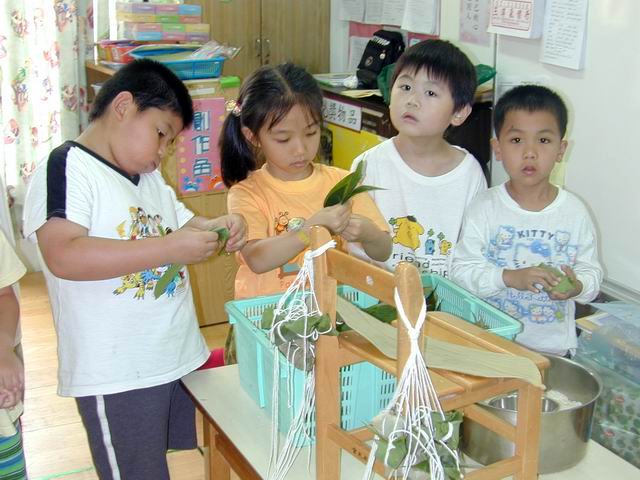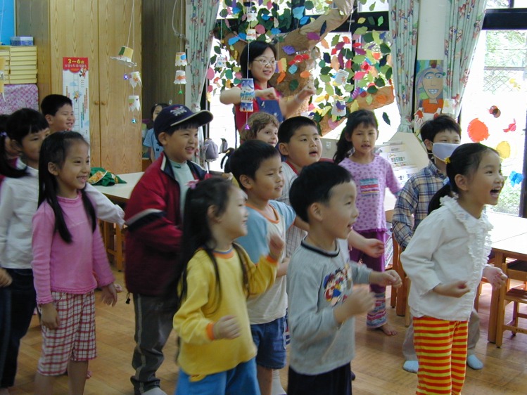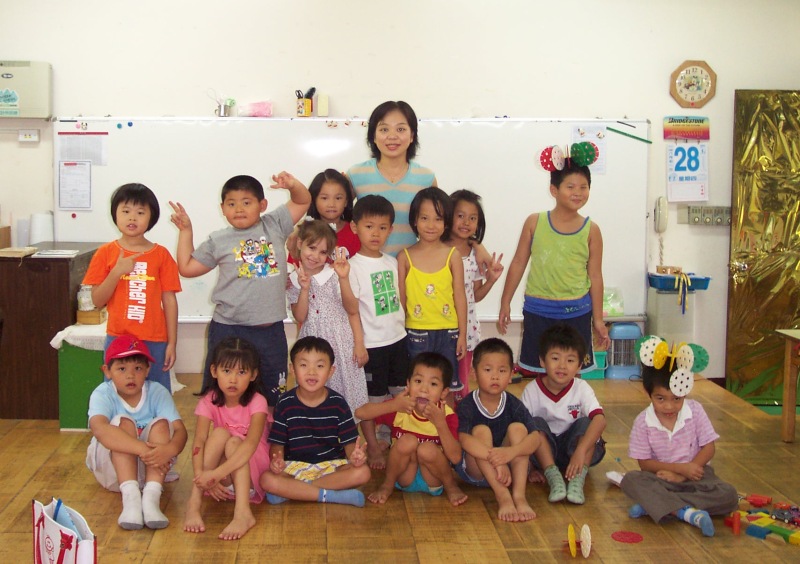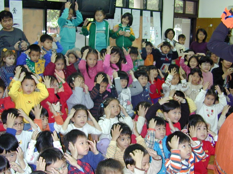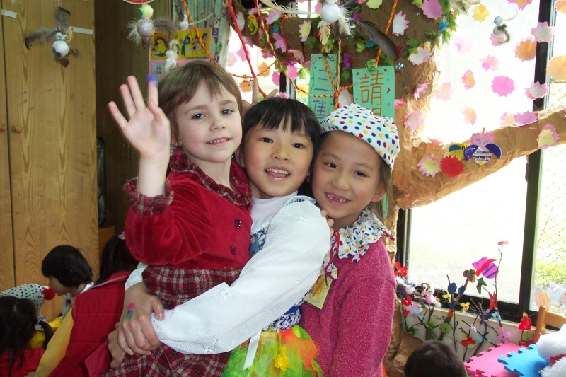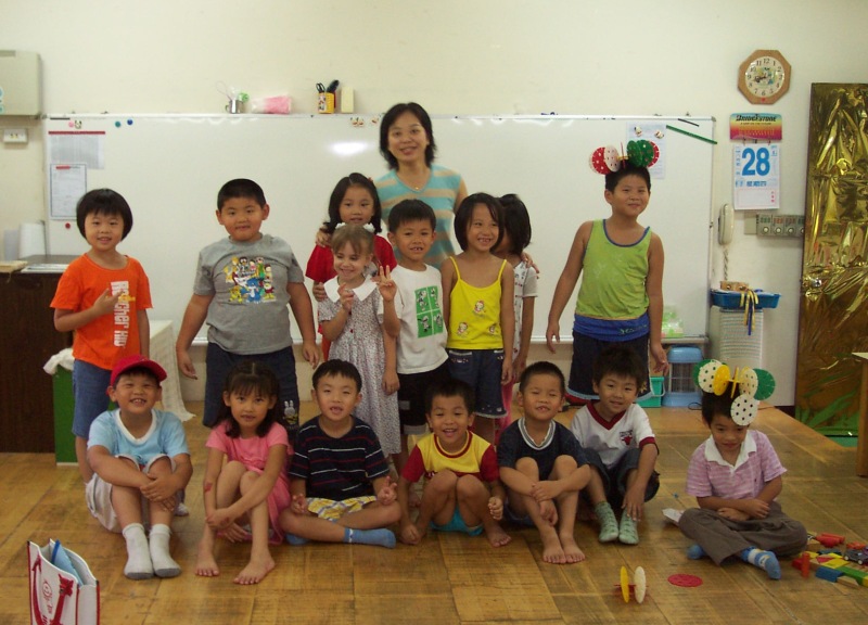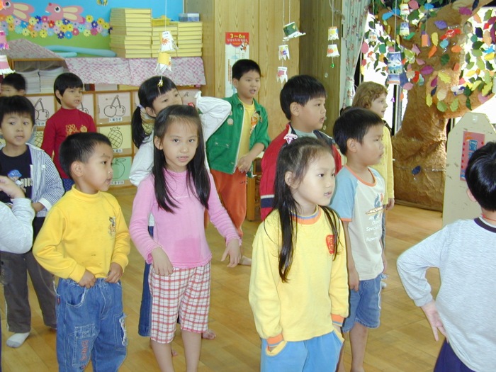 TeachersThe Chinese word for teacher is laoshi. Students call their teachers by their family name plus laoshi. Clara's teachers are He Laoshi and Zhang Laoshi. Clara's ClassmatesClara's class has about thirty students and two teachers. This is the standard size for a 5-year-old kindergarten class in Taiwan. Nearly all of her classmates are Chinese-speaking Taiwanese children. Since Academia Sinica is an internationally-known research institute, a few of her classmates have lived abroad and know a little English. She also has a Russian classmate, who hardly knows any English at all ... but she speaks beautiful Chinese! Clara's ClassEach class has a name: the "White Cloud" class, the "Star" class, and the "Sunshine" class, which is Clara's. Holidays and Special Events
