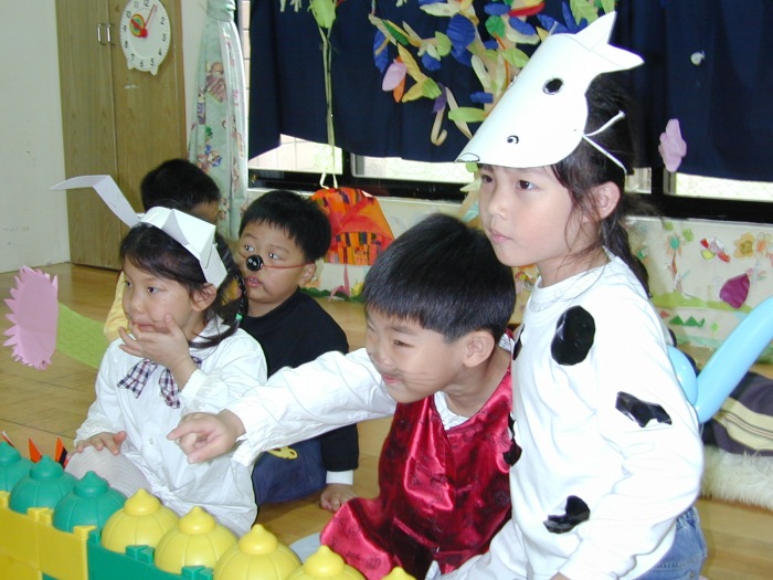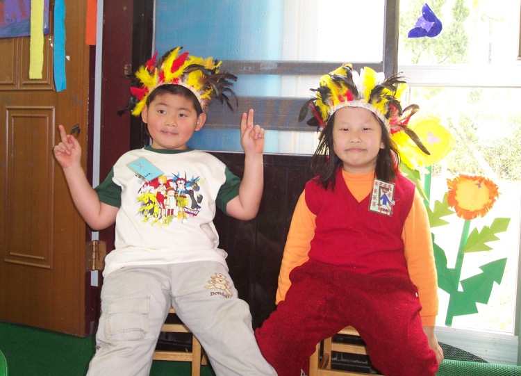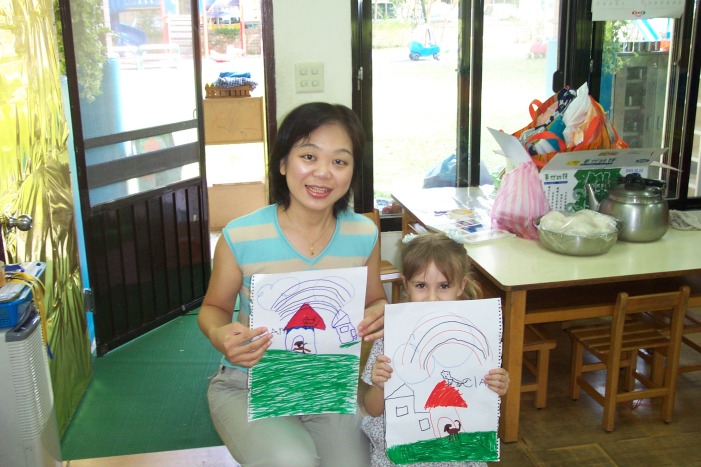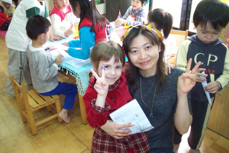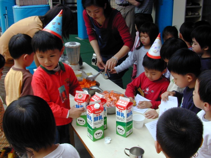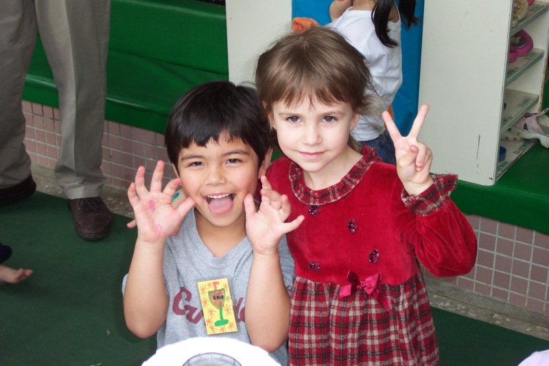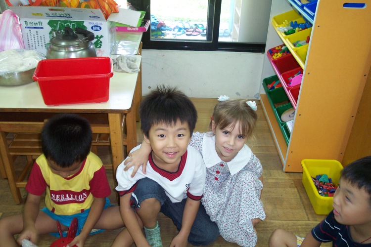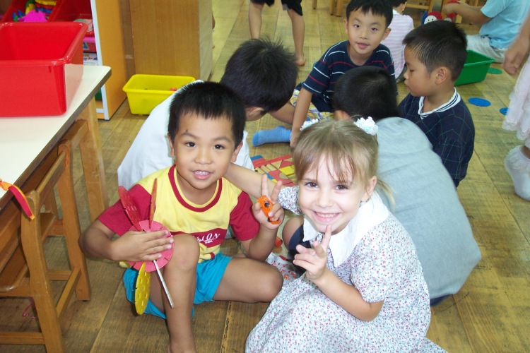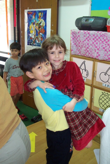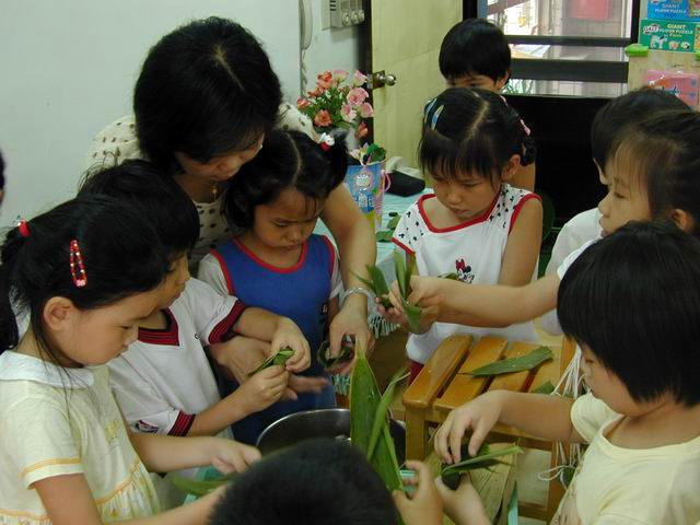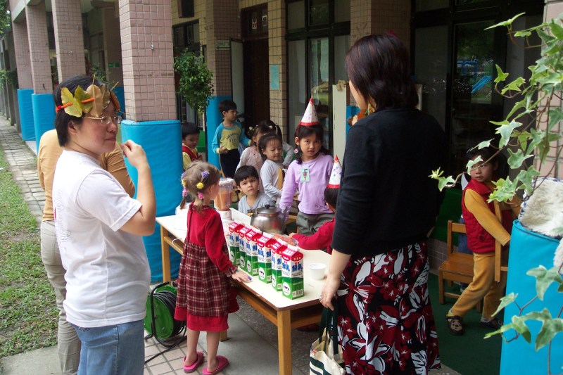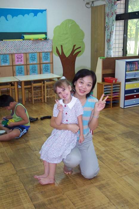 TeachersThe Chinese word for teacher is laoshi. Students call their teachers by their family name plus laoshi. Clara's teachers are He Laoshi and Zhang Laoshi. Clara's ClassmatesClara's class has about thirty students and two teachers. This is the standard size for a 5-year-old kindergarten class in Taiwan. Nearly all of her classmates are Chinese-speaking Taiwanese children. Since Academia Sinica is an internationally-known research institute, a few of her classmates have lived abroad and know a little English. She also has a Russian classmate, who hardly knows any English at all ... but she speaks beautiful Chinese! Clara's ClassEach class has a name: the "White Cloud" class, the "Star" class, and the "Sunshine" class, which is Clara's. Holidays and Special Events