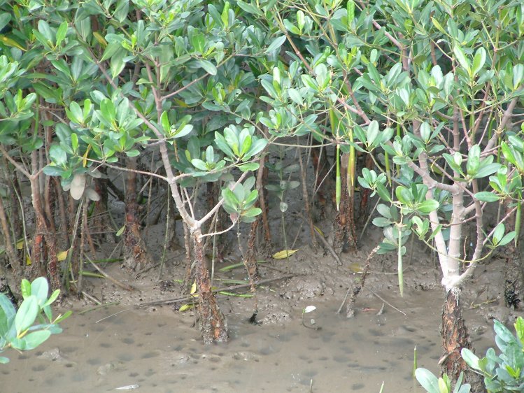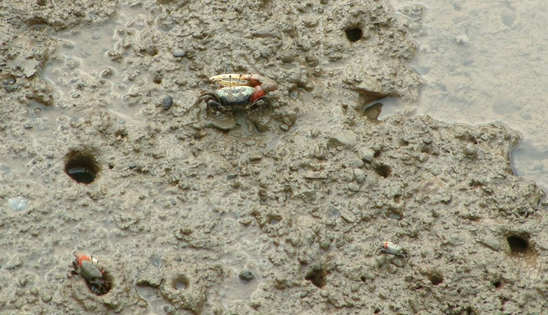 Family PhotosOur friend was nice enough to take a few pictures of us on the side of the temple. Thanks! Mangrove SwampThere is a nice nature walk through a mangrove swamp near Danshui. The mangrove swamp is called "Hong Shu Lin". There is a special kind of small crab which lives in the area. We saw hundreds of them from the path. |