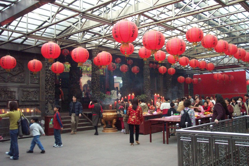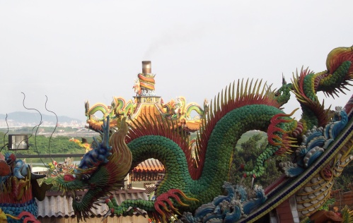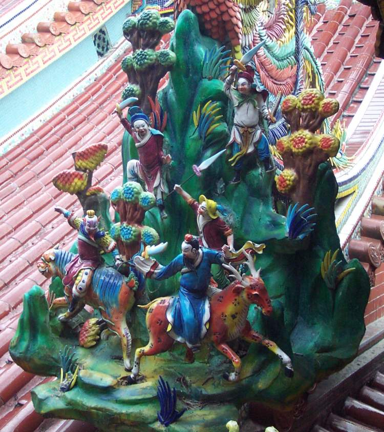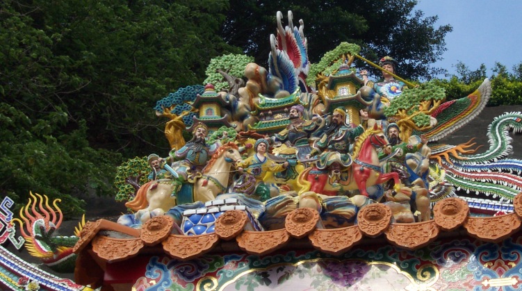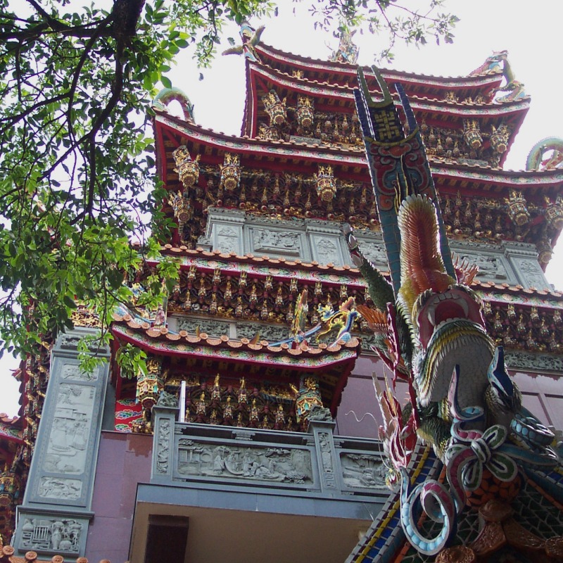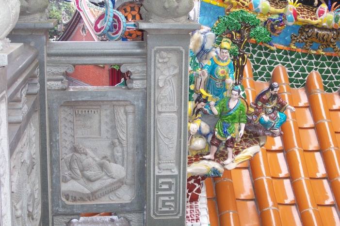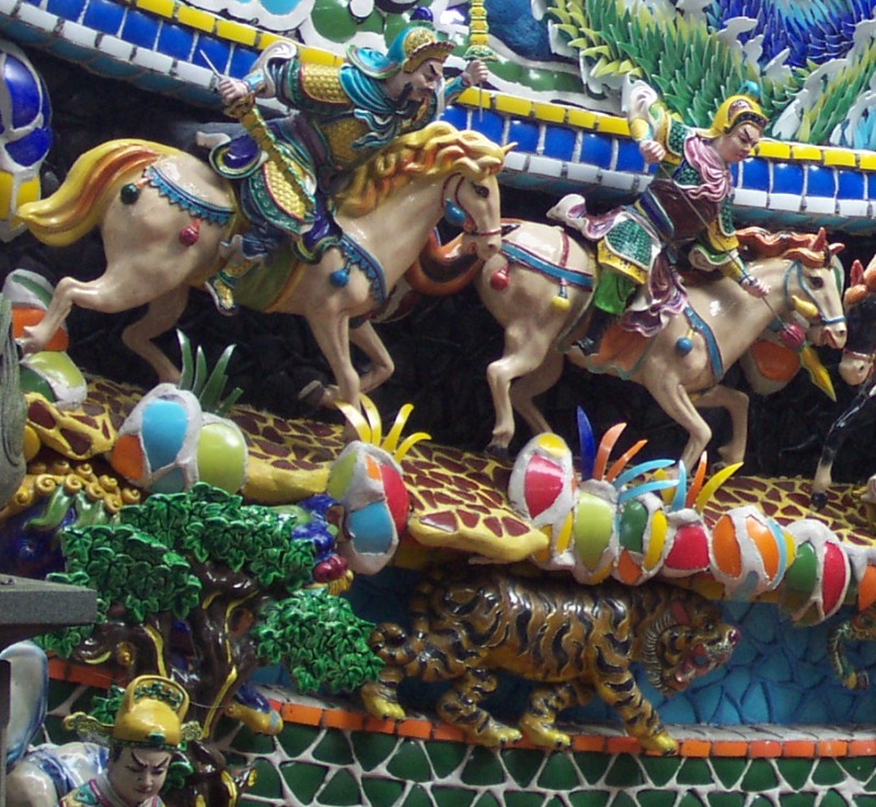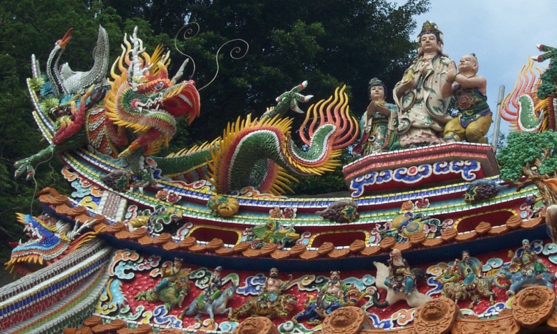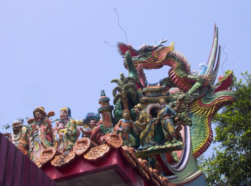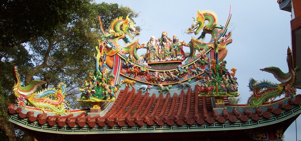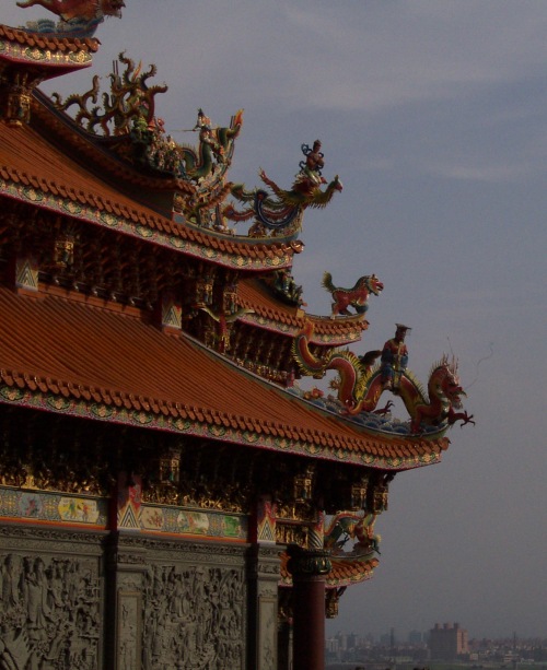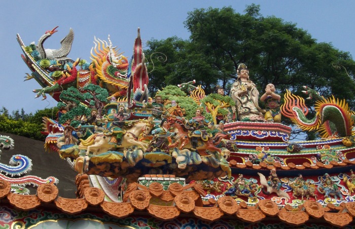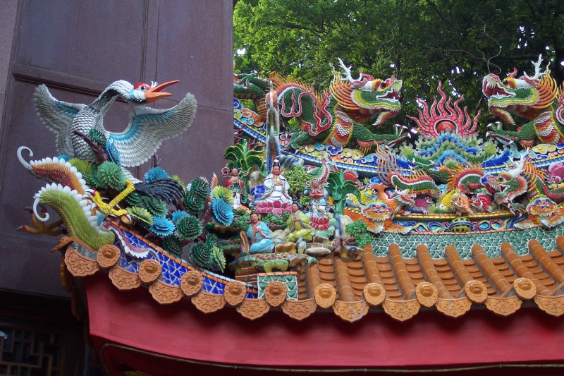 Note the intricate ceramic detail work on the roof. Chinese temples may have dozens or hundreds of small