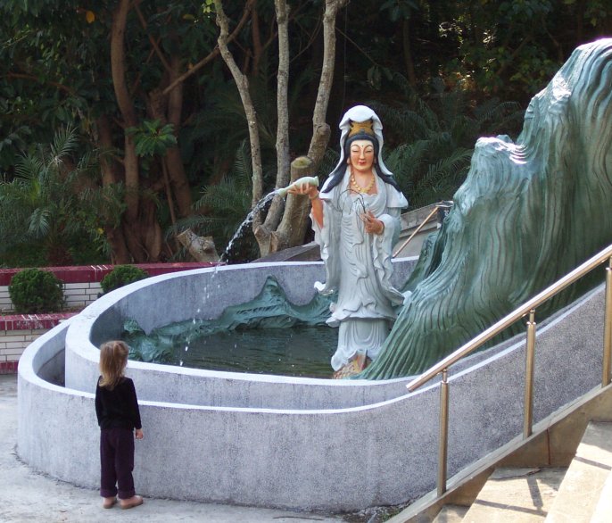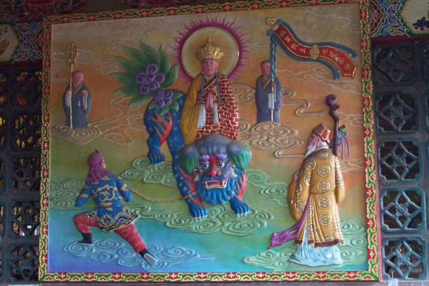 scenes, each different. The prominent female figure is Guanyin, a bodhisattva who has been incorporated