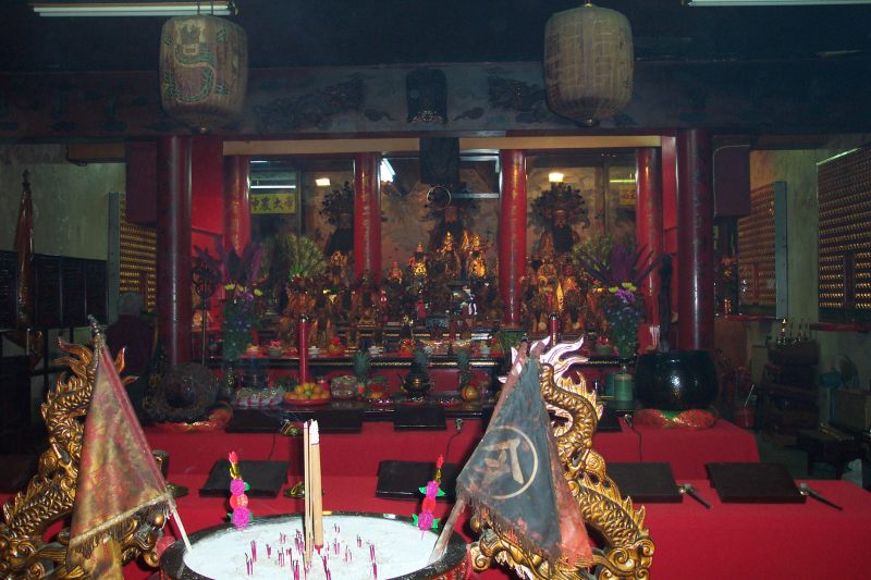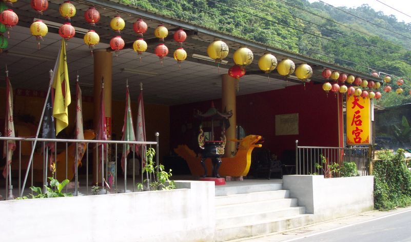 The temple with the yellow dragon-boats is dedicated to Matsu, the Taoist goddess of the sea.