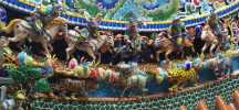 between grocery stores and apartments, as well as large, intricate temples. Small temples can be found on almost